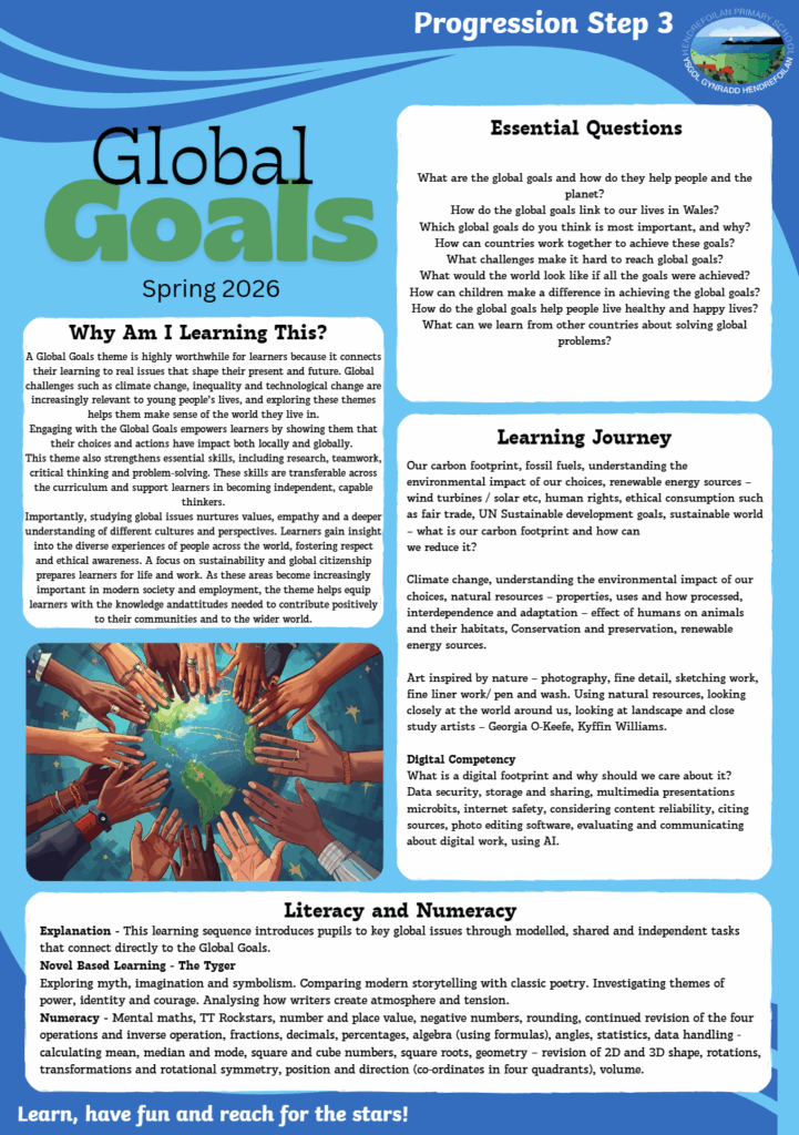 After a busy and successful Autumn Term, we are now stepping into an exciting new year. Happy 2026! The countdown is on for an amazing seven months before the big move to Olchfa. As this is their final year in primary school, we will continue to make it a memorable and rewarding experience together. We have a great term ahead starting with our new topic – Global Goals!