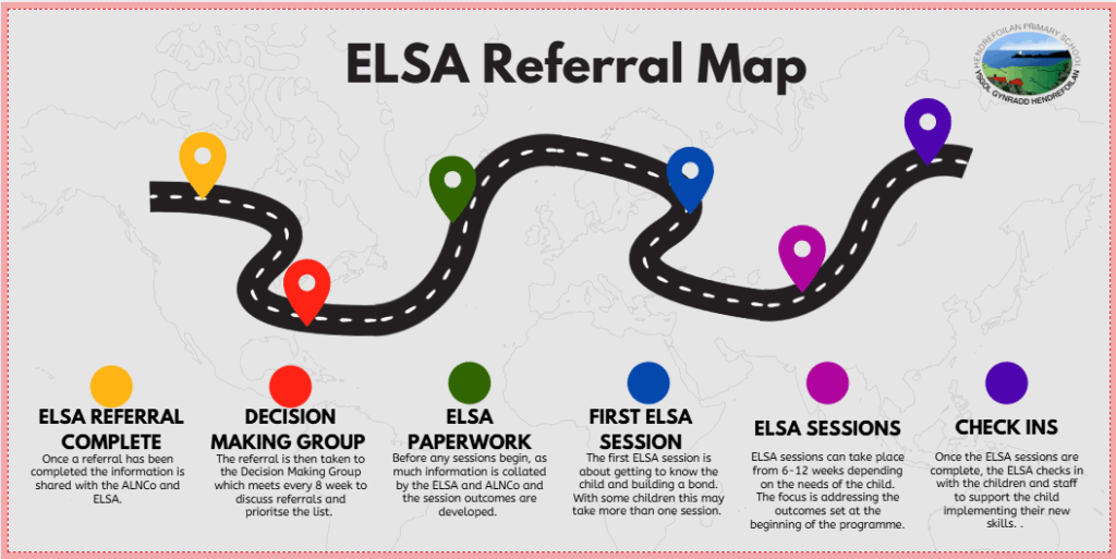 The ELSA support service, works on a needs assessment, where the children’s needs are prioritised and a decision making group within the school meet to identify those children needing support and prioritising them accordingly. The referral process itself can take up to 8 weeks before you would get a decision as to whether your child can access ELSA and when the programme will begin.